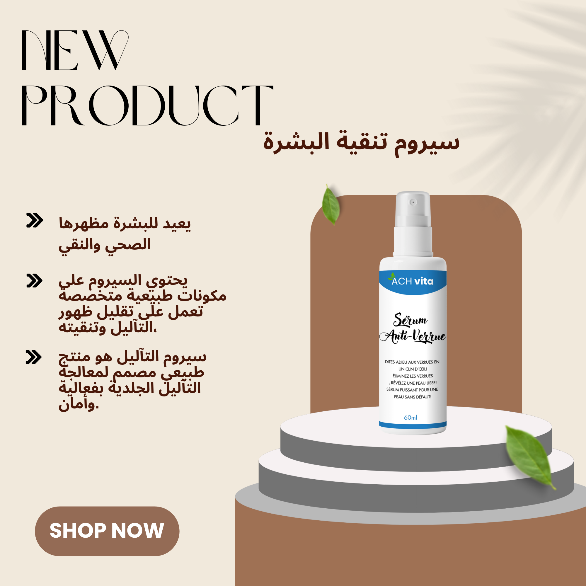 منتج طبيعي مصمم لمعالجة التآليل الجلدية بفعالية وأمان. يحتوي السيروم على مكونات طبيعية متخصصة تعمل على تقليل ظهور التآليل وتنقيته، مما يعيد للبشرة مظهرها الصحي والنقي